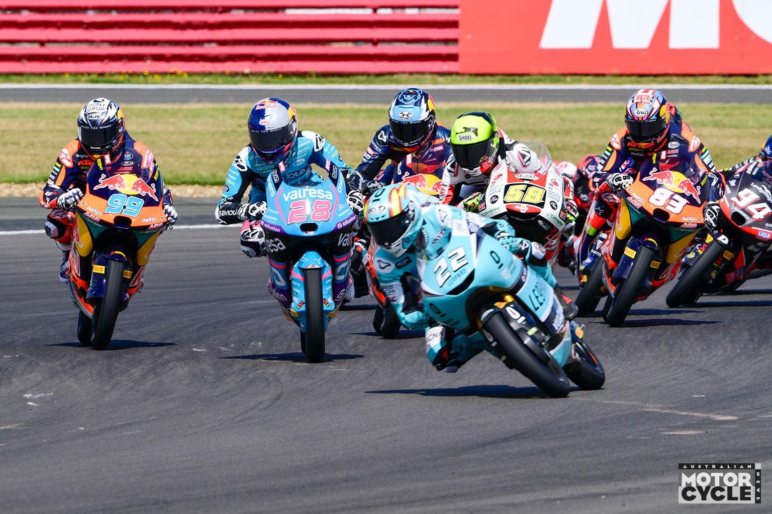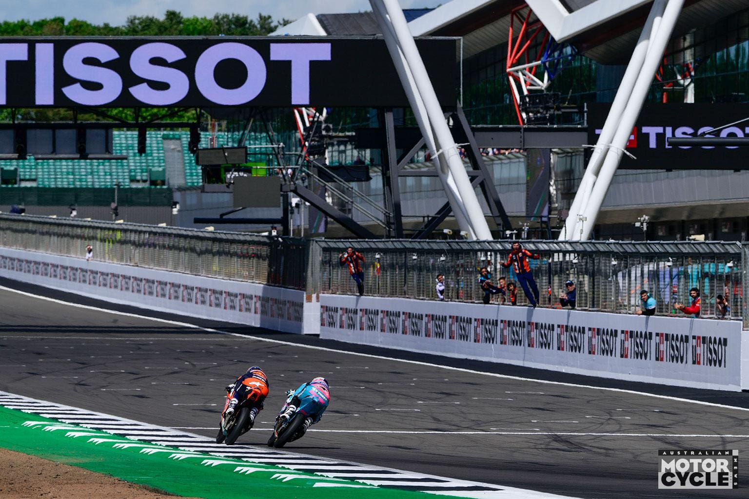 When the lights went out at Silverstone, it was Rueda’s rookie teammate Alvaro Carpe who launched ahead, taking the holeshot and setting the early pace. Rueda made immediate progress, cutting through the pack with clinical precision, picking off rivals as the long freight-train lead group began to form. By the end of Lap 3, the #99 had latched onto the tail of the lead pack, and by Lap 4 he was already carving through it with intent. Joel Kelso was looking strong also, taking the lead on lap 5 before losing the front as he changed direction going into Club, ending his hopes of a third consecutive podium.