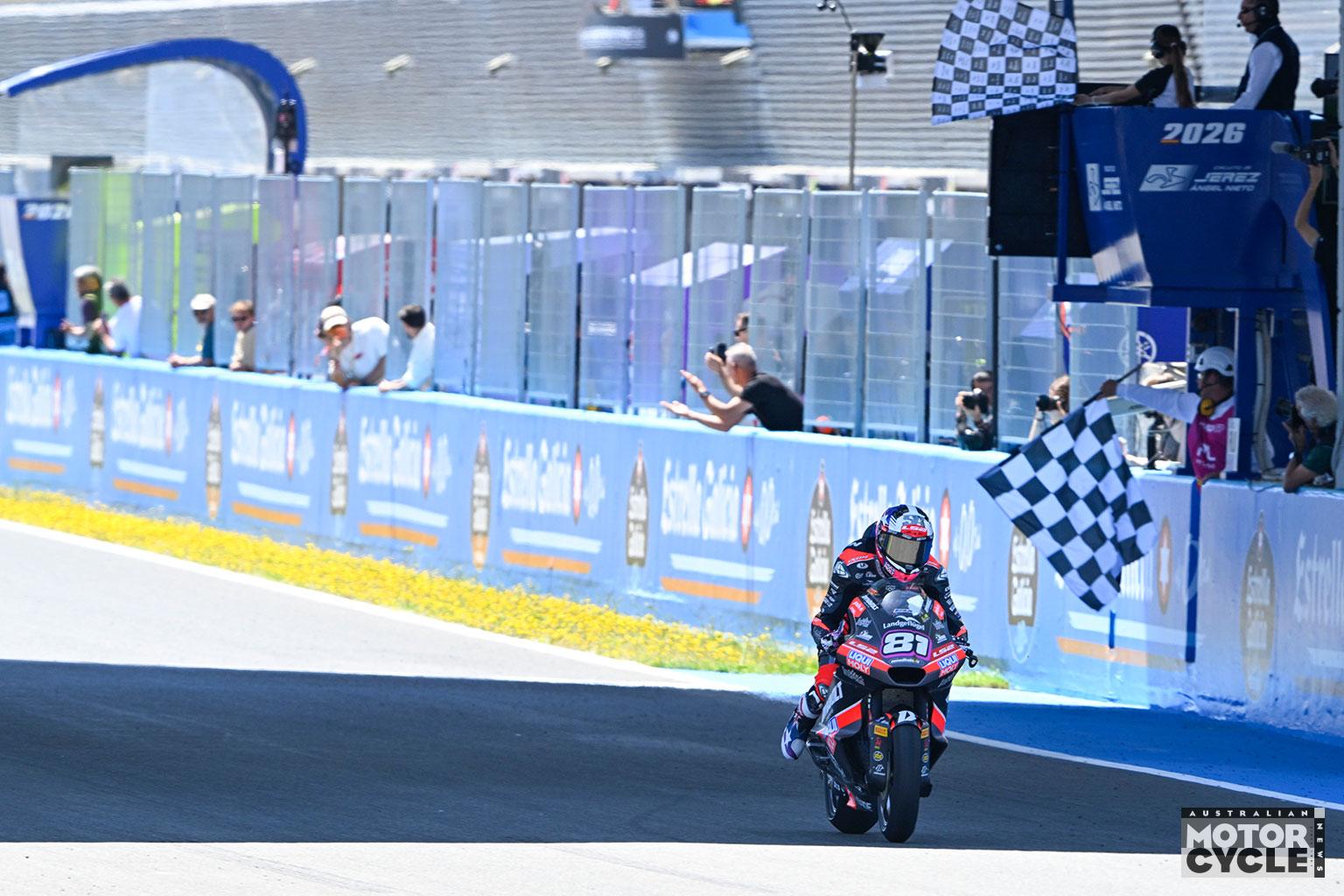 Senna Agius delivered a defining Moto2 Spanish Grand Prix victory under the baking Andalusian sunshine, fending off championship leader teammate Manuel Gonzalez and Dutch pole sitter Collin Veijer with authority. Senna was made to work for his second win in a row, having to fight his way forward from the second row.