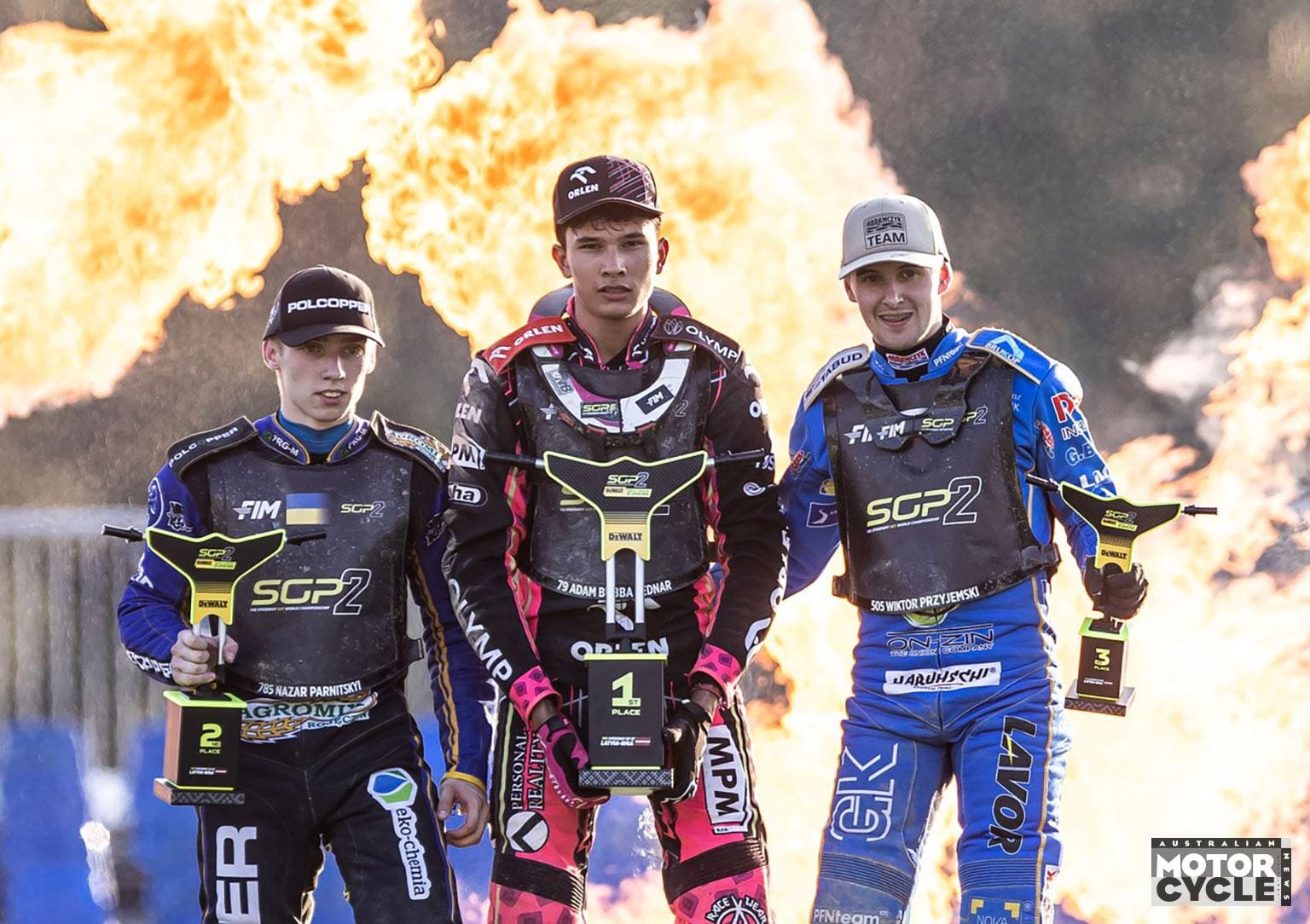 Czech rider Adam Bednar (above) won the round, but defending champion Wiktor Przyjemski (below right) of Poland still leads the way ahead of Ukrainian Nazar Parnitskyi (below left) and Dane William Drejer, with Bednar fourth with one round remaining.