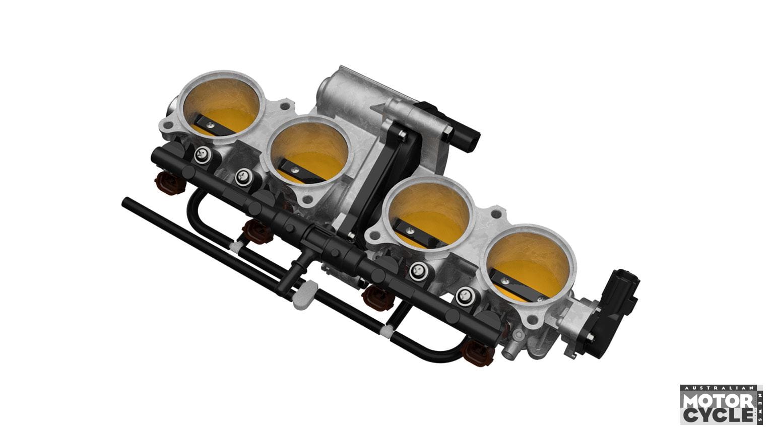 The exhaust valves are bigger for 2026, up from 25mm to 26mm, and the engine is fed by larger, 48mm throttle bodies instead of the previous 46mm units, with revised, 8-hole injectors instead of the previous 10-hole design in the upper position. A new exhaust with a larger under-engine collector, repositioned and enlarged catalytic converter and slimmer, longer end can, completes the mechanical redesign.