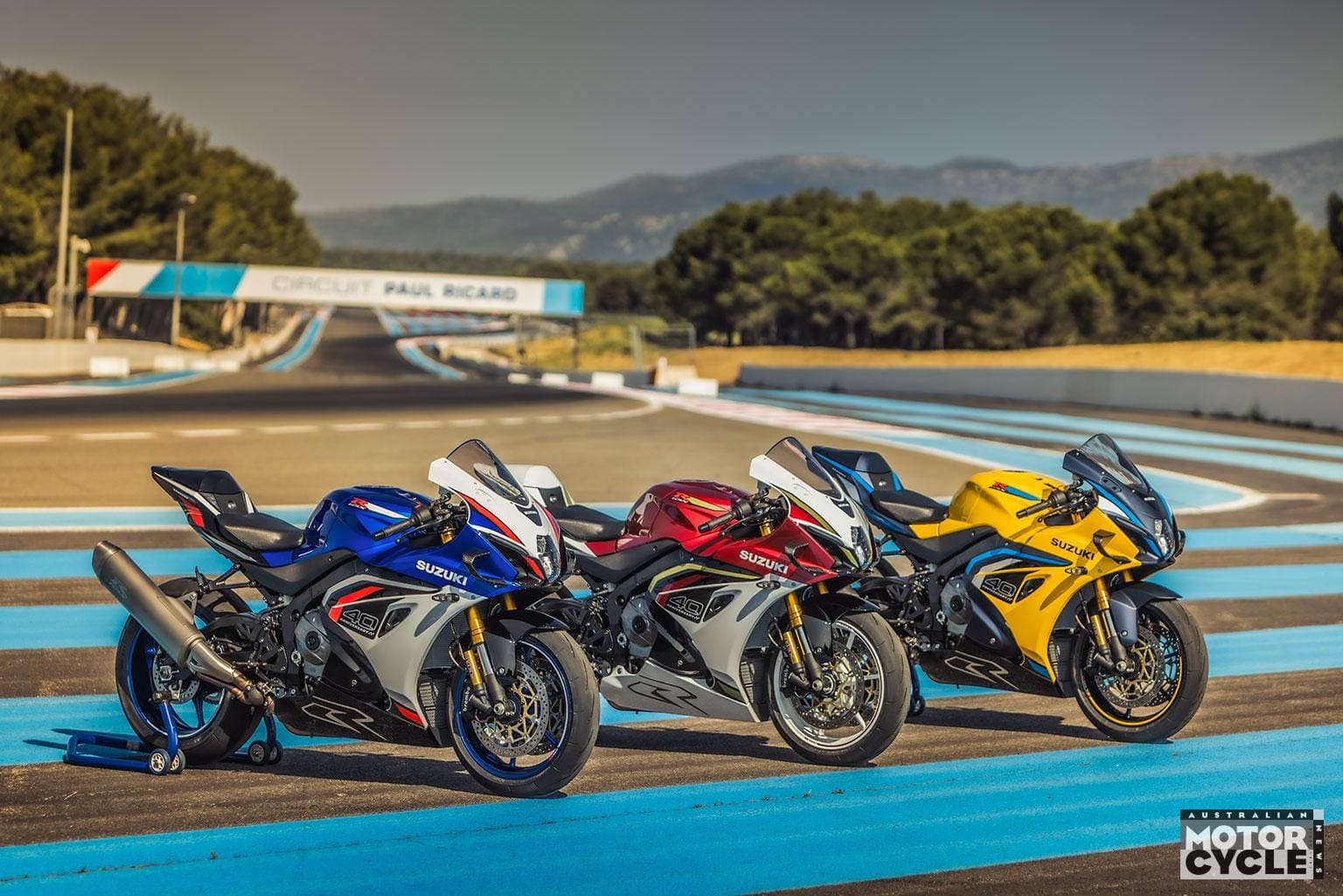 A trio of new colour schemes celebrate the GSX-R’s ‘40th anniversary’ (it’s not really the 40th year of the name, as Suzuki often seems to forget that the GSX-R400 actually predated the GSX-R750, and was introduced in 1984 when it was simply called ‘GSX-R’ and debuted the alloy-framed, four-cylinder layout that became a sportsbike staple in the following years.)