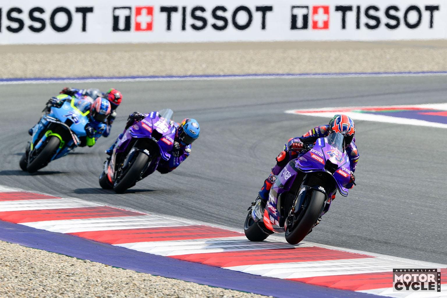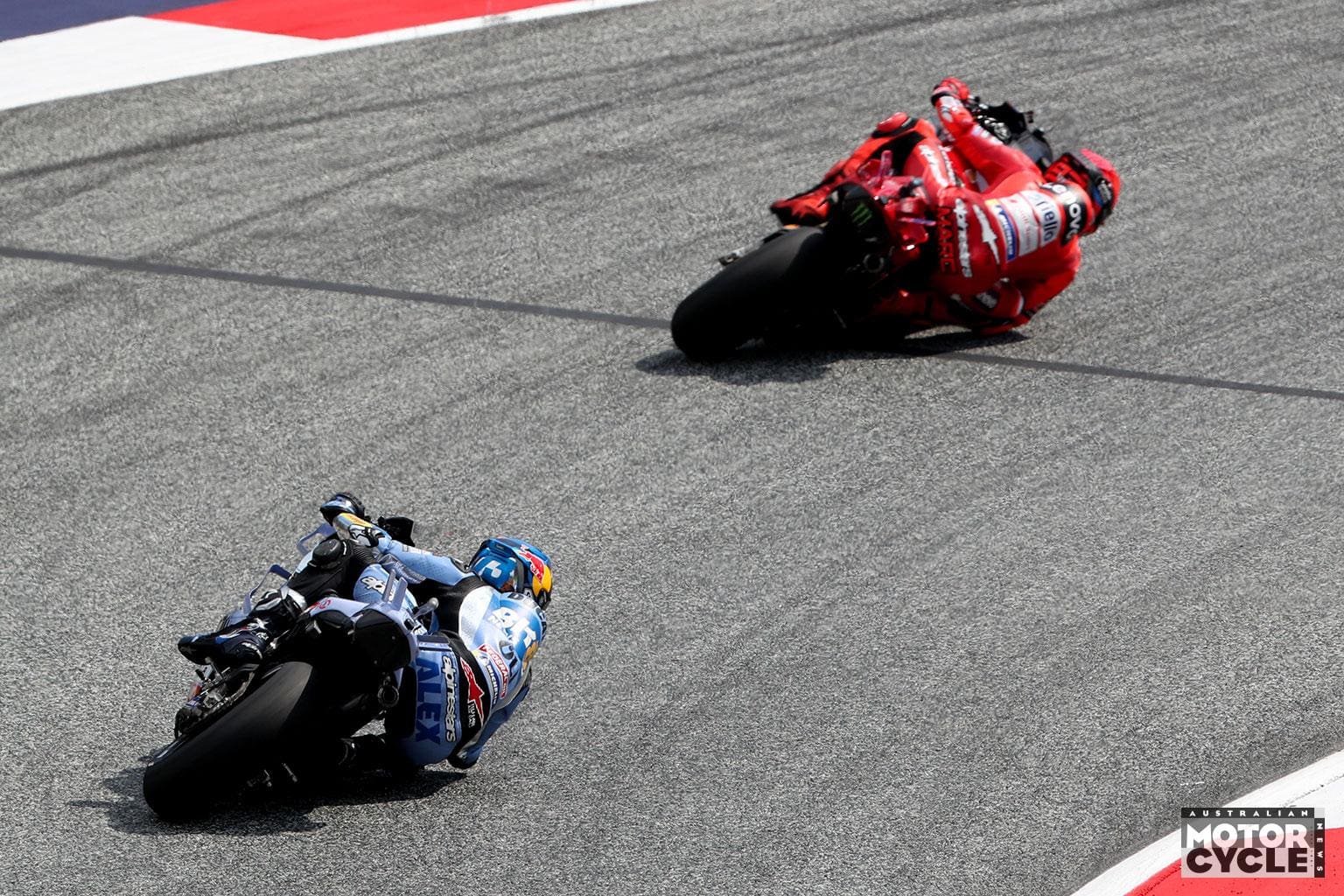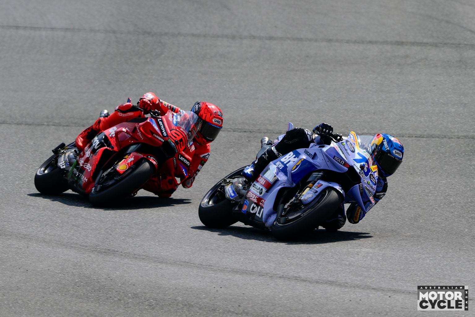 Alex took second place, 3 seconds clear of Acosta in third. Marco Bezzecchi couldn’t convert his pole into a podium finish but still came home with a respectable 4th, while Brad Binder’s late charge delivered fifth. Fermin Aldeguer finished sixth after Raul Fernandez had to pull out with ride height device troubles, while Enea Bastianini took seventh ahead of Fabio Di Giannantonio. Johann Zarco once again finished as top Honda in ninth, while Jorge Martin’s late race aggression sealed tenth. Jack Miller could only manage 17th, his Yamaha clearly suffering at a track that rewards horsepower and rear traction – two areas the YZR-M1 struggles with.