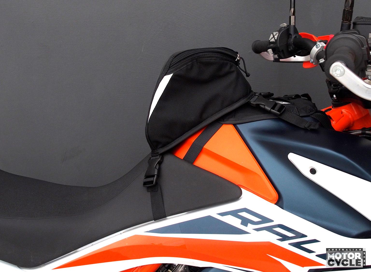 Safari Pod: Weird name, brilliant idea. This Aussie-made adventure tank bag keeps your hands clean at fuel stops and protects the crown jewels when you’re up on the pegs. Works with both long-range plastic fuel tanks or the bigger aircraft-filler style – just swap harnesses. Own both types of bike? No worries; just buy two harnesses.