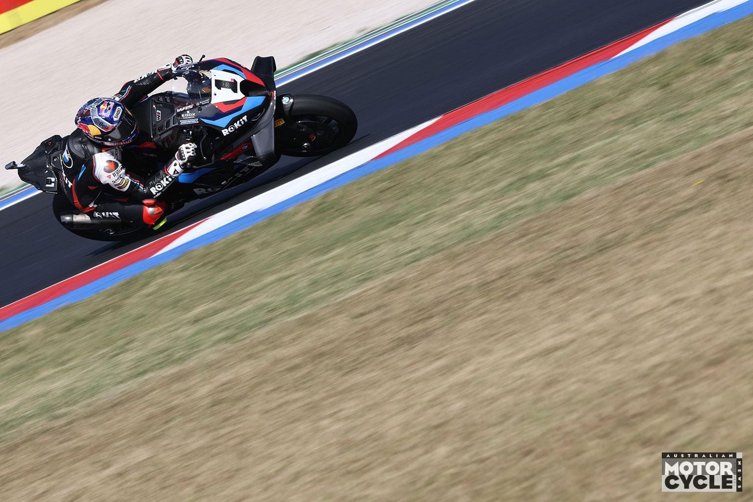 Nicolo Bulega (Aruba.it Racing – Ducati) made a remarkable early lap to head up the Superpole qualifying on Saturday morning, until Toprak Razgatlioglu (ROKiT BMW Motorrad WorldSBK Team) eventually bettered it – making all sorts of shapes his M1000RR to break into the 1’31s.
