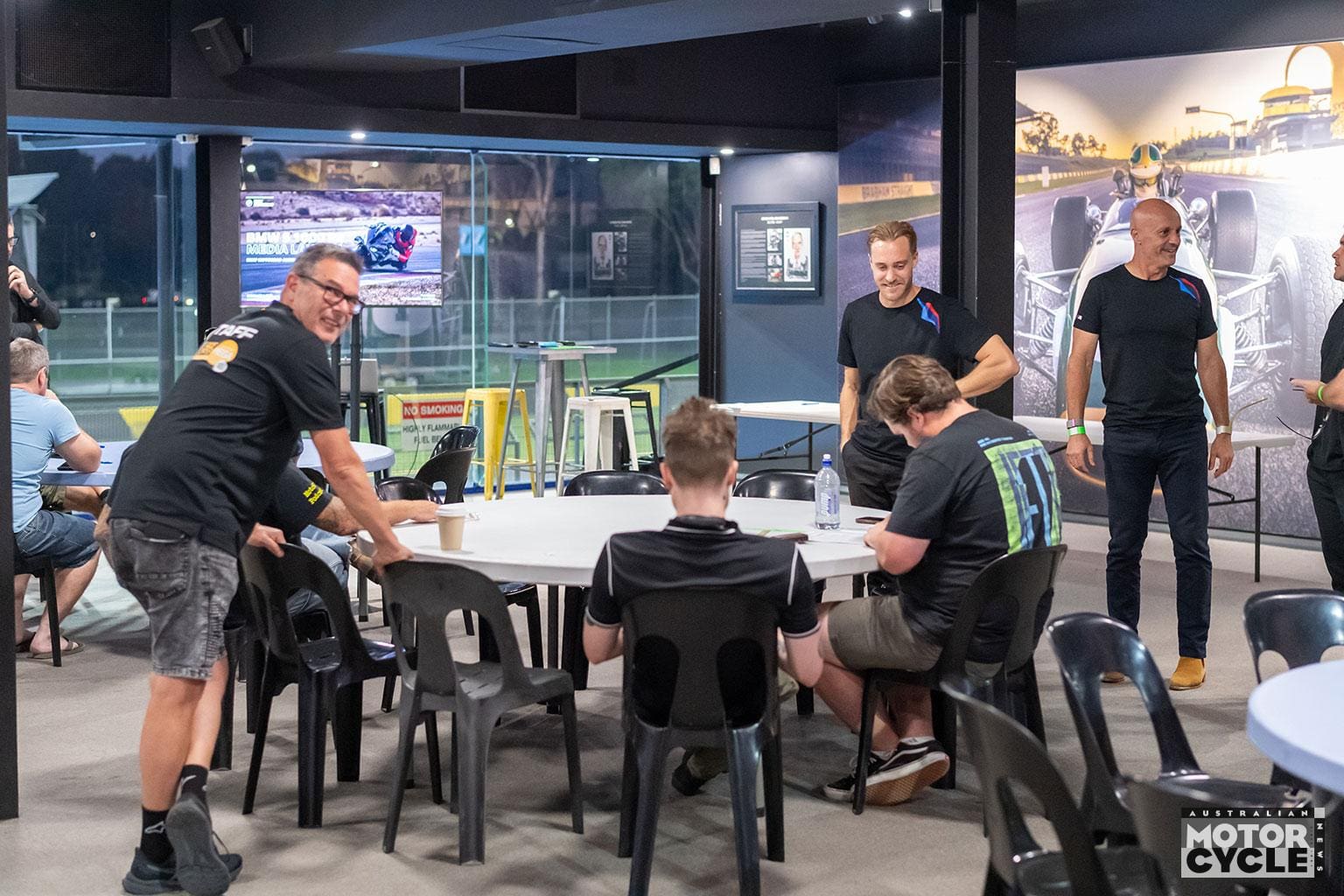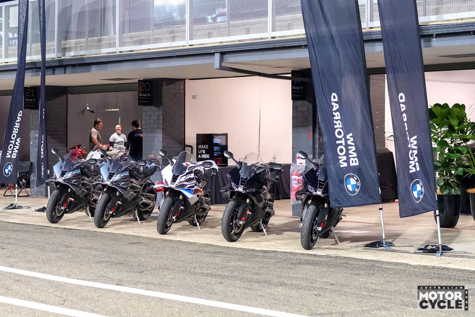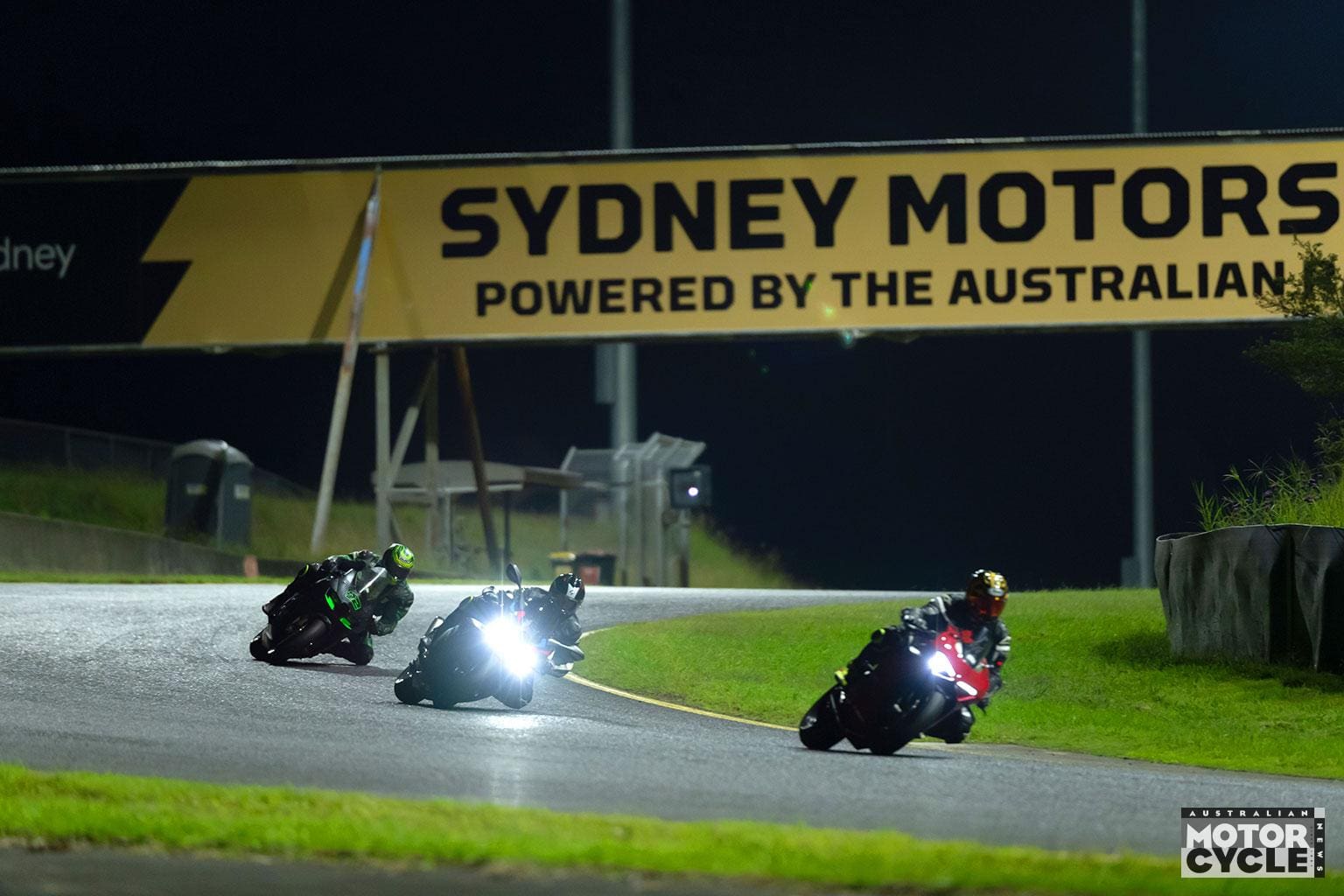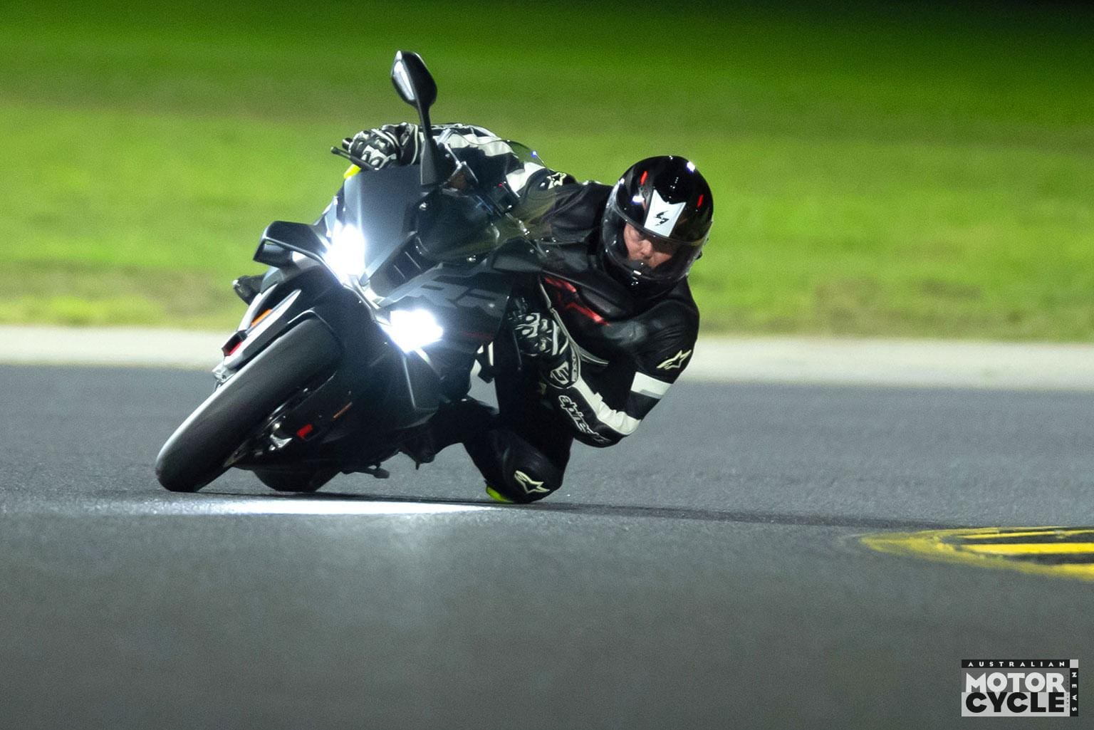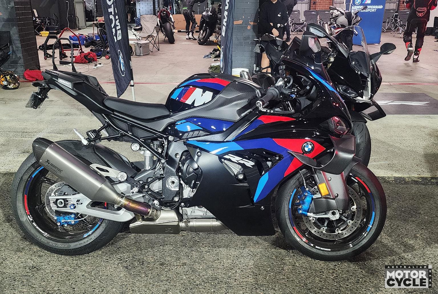 It was my first time doing laps at Sydney Motorsport Park at night, so for the first session I grabbed the only bike with scrubbed-in tyres, dialled up Dynamic mode and headed out into the fast group. It just so happened to be the blinged-out M-Sport model, complete with carbon wheels.