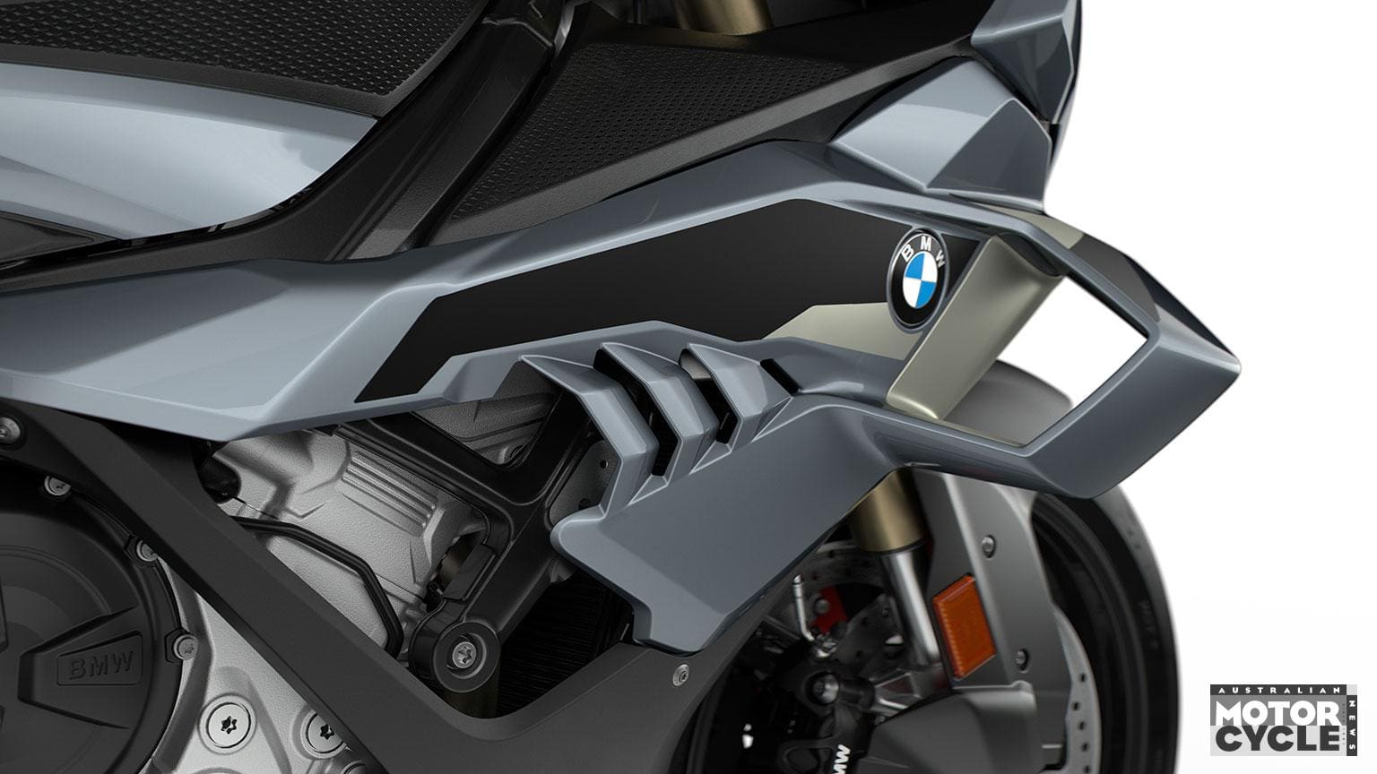The updates are limited to an improved aero package, a shorter throttle rotation and the inclusion of Race Pro modes as standard across the whole range. The wings and side fairings are carried over from the 2024 M 1000 RR and tweaked further again. BMW quote a 37 per cent increase in downforce from these new wings, bringing the numbers up to 23.1kg of force at 300km/h. The front guard is also new. It’s shaped to increase front stability, protect the fork legs from stone chips and, most importantly, direct cool air straight into the brake calipers. These cooling ducts will make no difference to road riding, but as the S 1000 RR is aimed at track performance, it is an extra bit of security against brake fade on braking-heavy tracks, or when you want to ride like Stoprak.