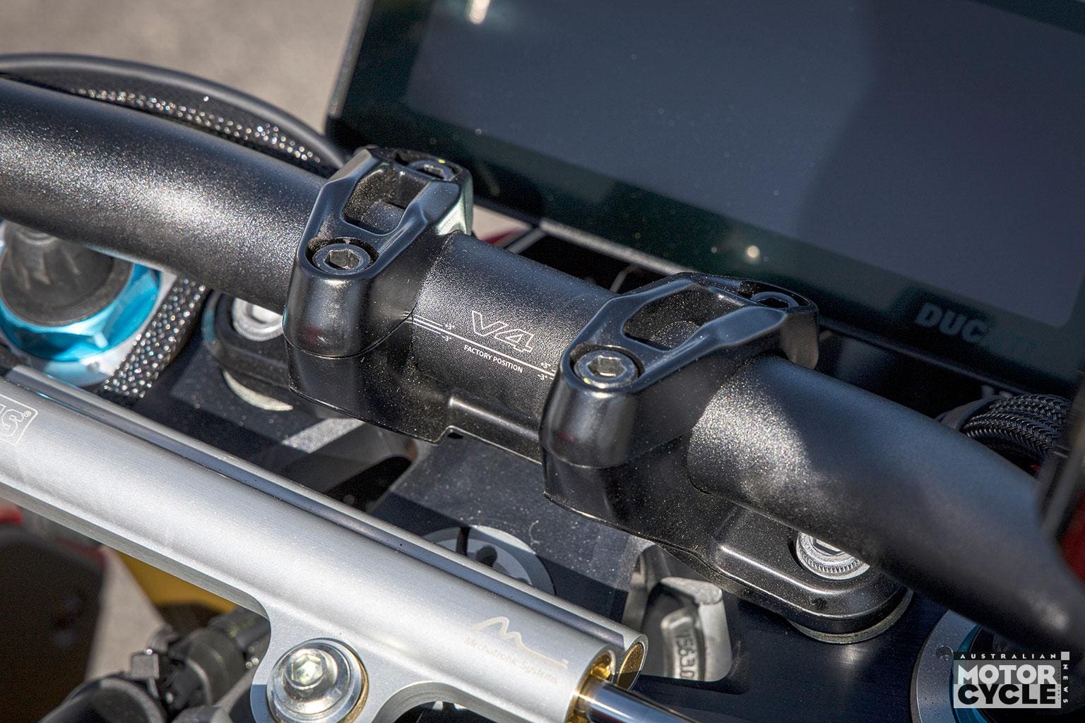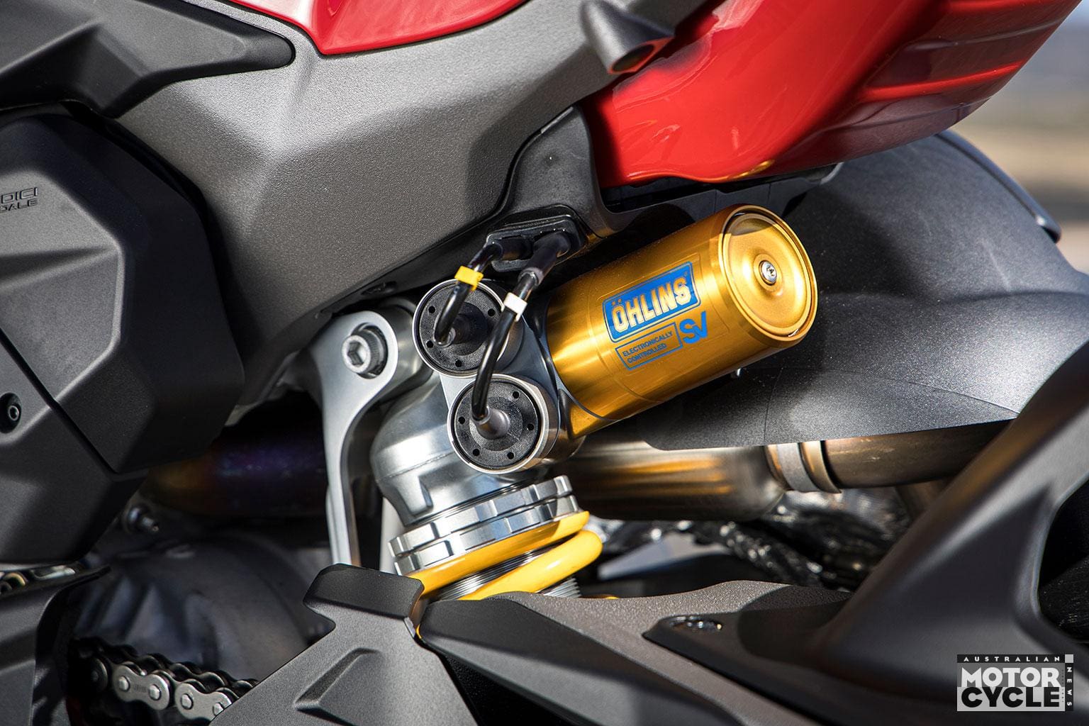 The standard V4 has a sticker price of $38,400 compared to $43k for the V4 S. It also has the same chart-leading power and torque, the same rider aids, eCBS and DVO, and the same lightweight, improved chassis and swingarm. The major difference is the standard bike does not have the adaptive electronic semi-active Smart EC3 suspension from Öhlins. Instead, it’s equipped with manually adjustable suspension: 43mm BPF from Showa and a single fully adjustable unit from Sachs on the rear. The wheels are now light alloy, not forged aluminium as on the S, and the quoted overall weight is now 191kg compared to 189kg on the S.