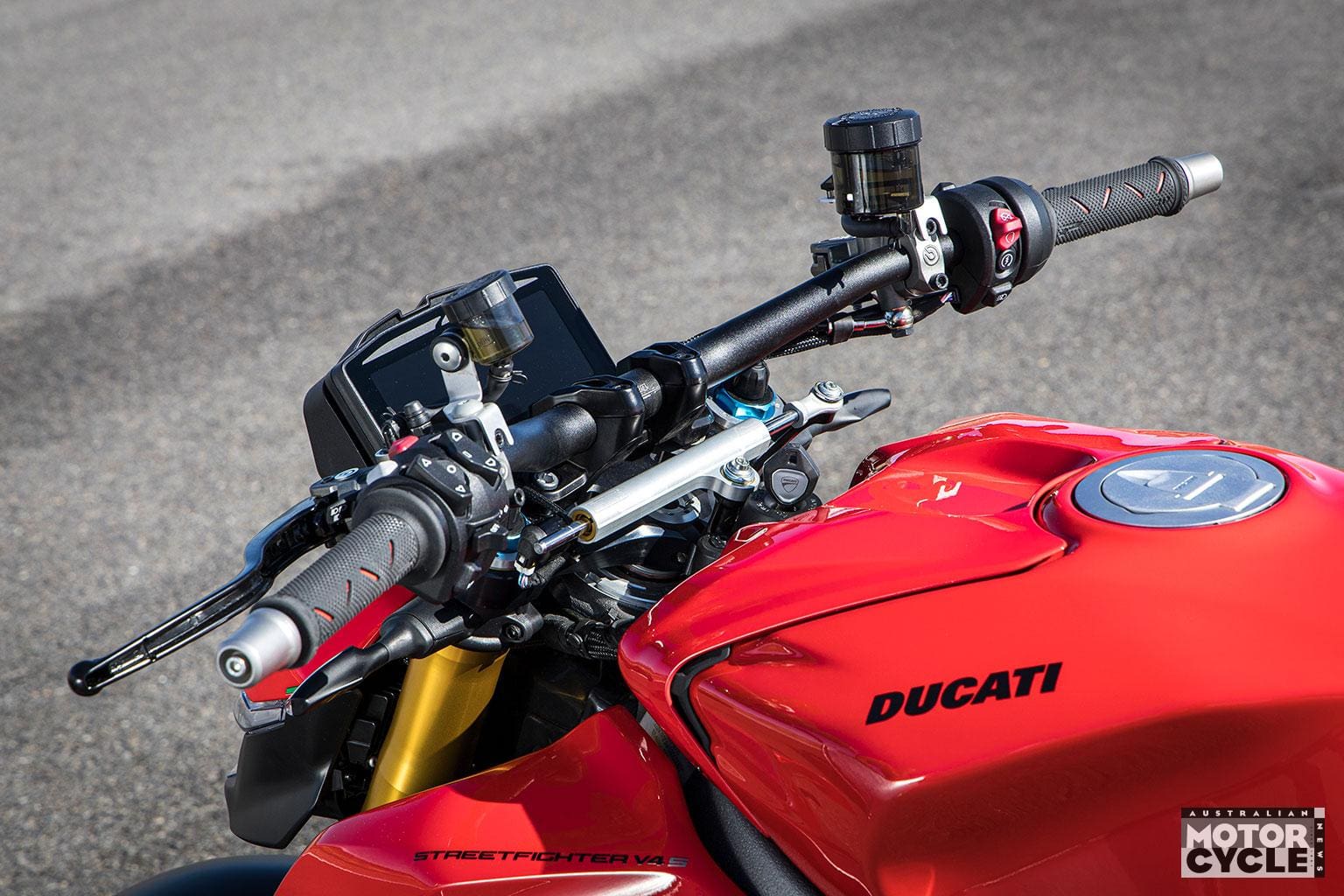 But this bike is not all about peak power and brutish engine performance. The new and lighter chassis and swingarm give more feel and, despite the power hike, make it easier to ride. The electronics and rider aids are some of the best on the market and able to transform the Streetfighter from gentle pussycat to hungry lion in just a few seconds. Its Smart EC3 Öhlins suspension is unflappably brilliant, with clear feedback and staggering versatility. It too can transform the Streetfighter from an easy-going road bike to the sharpest track tool in mere moments.