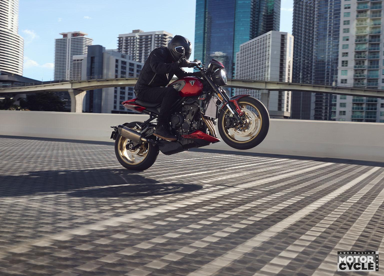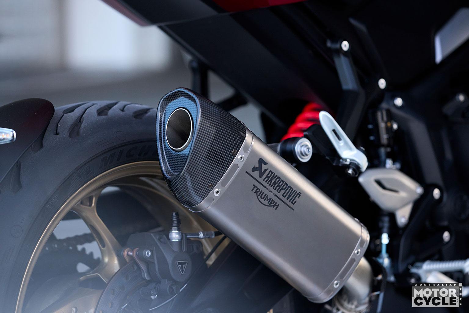 The bike carries a two‑year, unlimited‑kilometre warranty and class‑leading 10,000‑mile (16,000 km) service intervals. For riders who want more attitude, the Triumph Accessories catalogue includes an Akrapovič silencer with a titanium wrap and carbon‑fibre end cap.