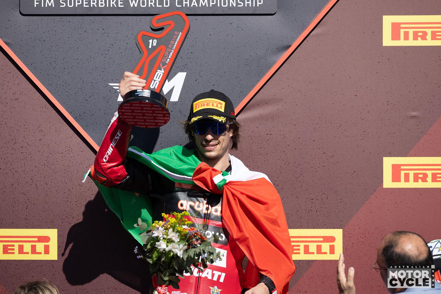 Behind Bulega, Ducati has piled up additional podium results through Iker Lecuona, who scored three at Portimao, plus one each from Yari Montella, Alvaro Bautista and Lorenzo Baldassarri at Phillip Island. The Panigale V4 R also locked out the front row at both rounds, with Bulega on pole ahead of Montella and Sam Lowes in Australia, then Bulega ahead of Lecuona and Montella in Portugal.
