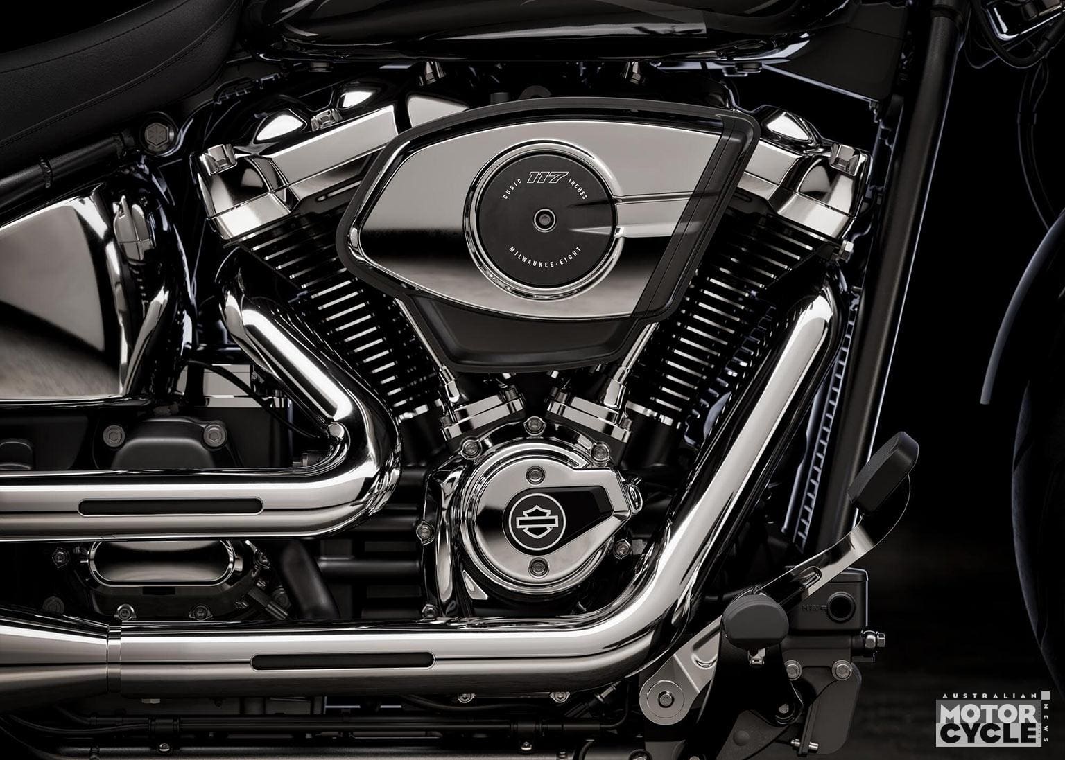 The new model gets a performance boost with the ‘Custom’ variant of the new and improved Milwaukee-Eight engine, providing higher compression ratio and delivering peak torque at a lower RPM, enhancing low-end performance.