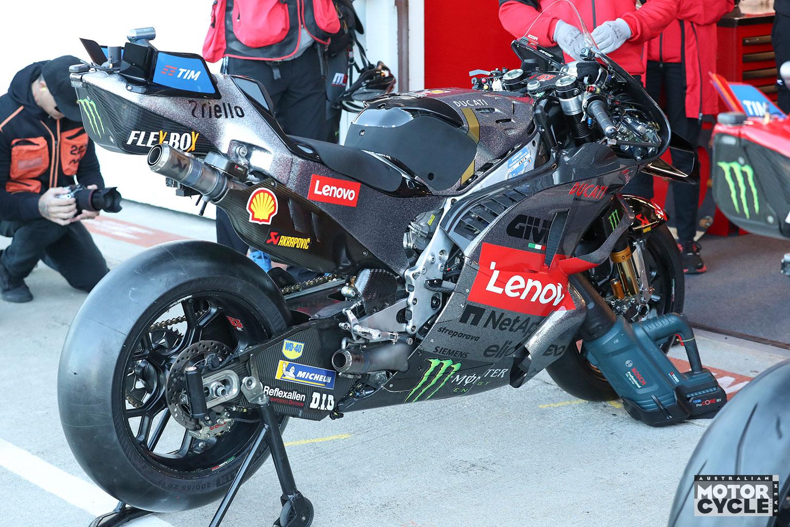 Bezzecchi has none of these problems; he went through the whole test plan and in the process clocked the most laps of the day (60). Aprilia brought a lot of aero parts and tested them in various combinations. The front wing was very different, more like Honda, while the three types of seat aero all looked like nothing we have seen before. But Marco warned us that, because of the limited track time, they had skipped the usual back-to-back test and therefore results still have a bit of a question mark over them. He didn’t want to speak about the aero but Martin did, telling us the front wing didn’t feel very different but one of the three rear options had improved the drive, the stability during banked-over acceleration. That’s interesting because so far, riders used to tell us that the aero behind their back was mostly to calm down the rear while upright braking, preventing it from coming up.