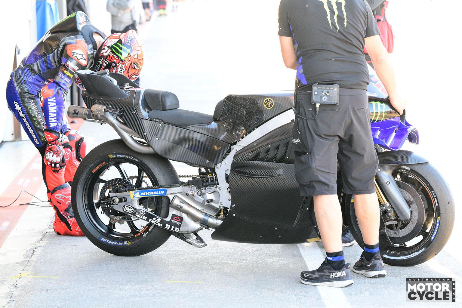 Alex Rins liked the braking, how the bike now stops. He was never keen on the old M1’s ‘all over the front’ braking. The V4 M1 now is fastest if it keeps its rear wheel on the ground, using the grip from the rear tire to stop the bike, much like the Ducati and Aprilia do it. The bike “still has Yamaha DNA in it” as Miller pointed out, but it’s also clearly still far off being competitive. The bike vibrated around mid-corner; that hinders traction, so much actually that Jack couldn’t improve his lap time when a new soft rear tire was put in.