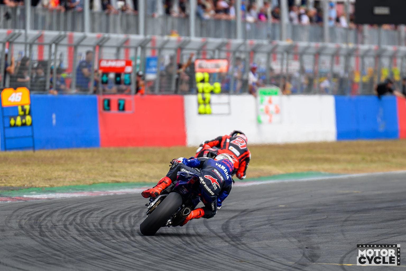 That left Allerton in a scrap with Anthony West for the final step of the podium, but out front, Waters had answered Jones’ stunning pace with his own personal bests, the pair trading mid and low 1:07s as they turned up the heat. Jones looked to be using slightly wider, flowing lines to maximise the Yamaha’s corner speed, while Waters kept it tighter and utilised the Ducati’s punch. The Panigale had pace to burn, with Allerton’s tri-colour Ducati about 8 km/h up on the Yamaha down the front straight, making West’s job very hard as he looked for a place to get by.