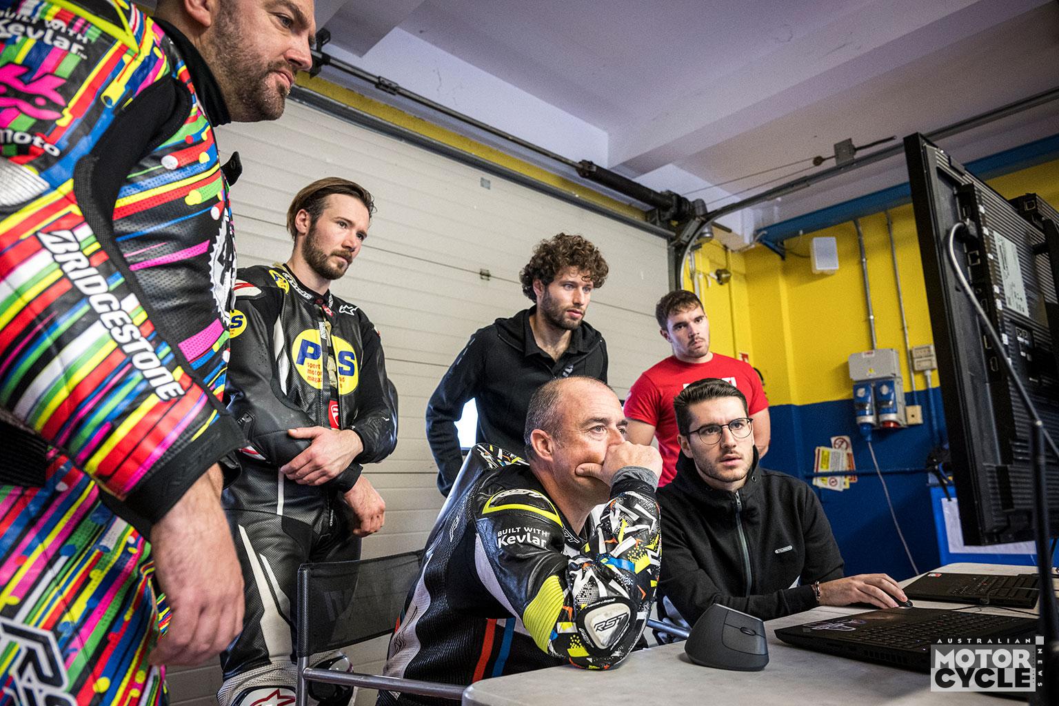 Like a normal trackday, session one is all about finding your feet, evaluating where the grip is, which kerbs can be clipped and which can’t. The wet conditions are forever changing as the rain gets heavier then briefly relents, and sometimes a wider line has more grip than the conventional line. After several laps without blinking, it’s time to head back to the pits to check out the data.