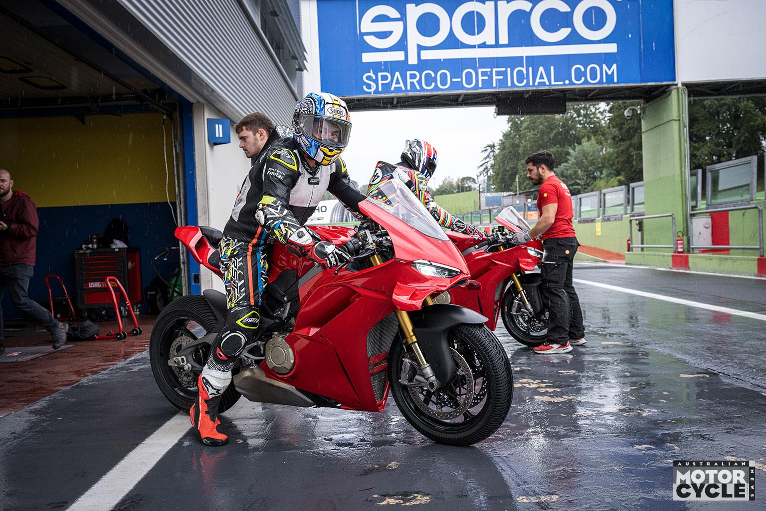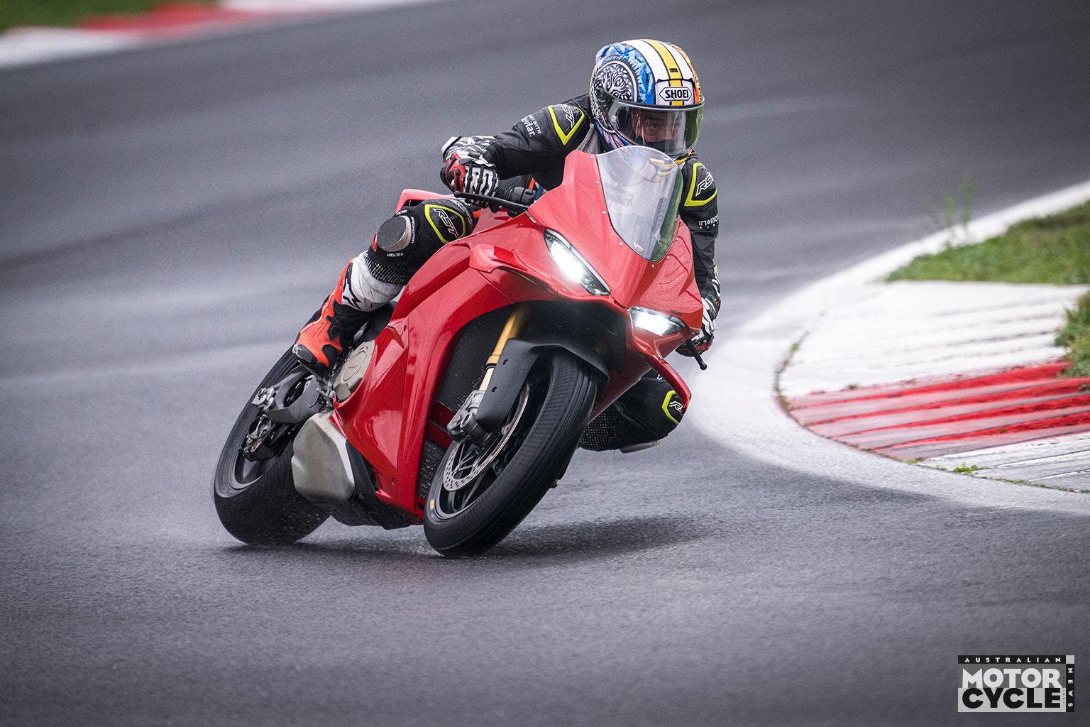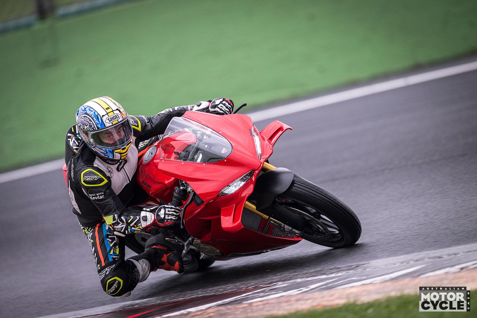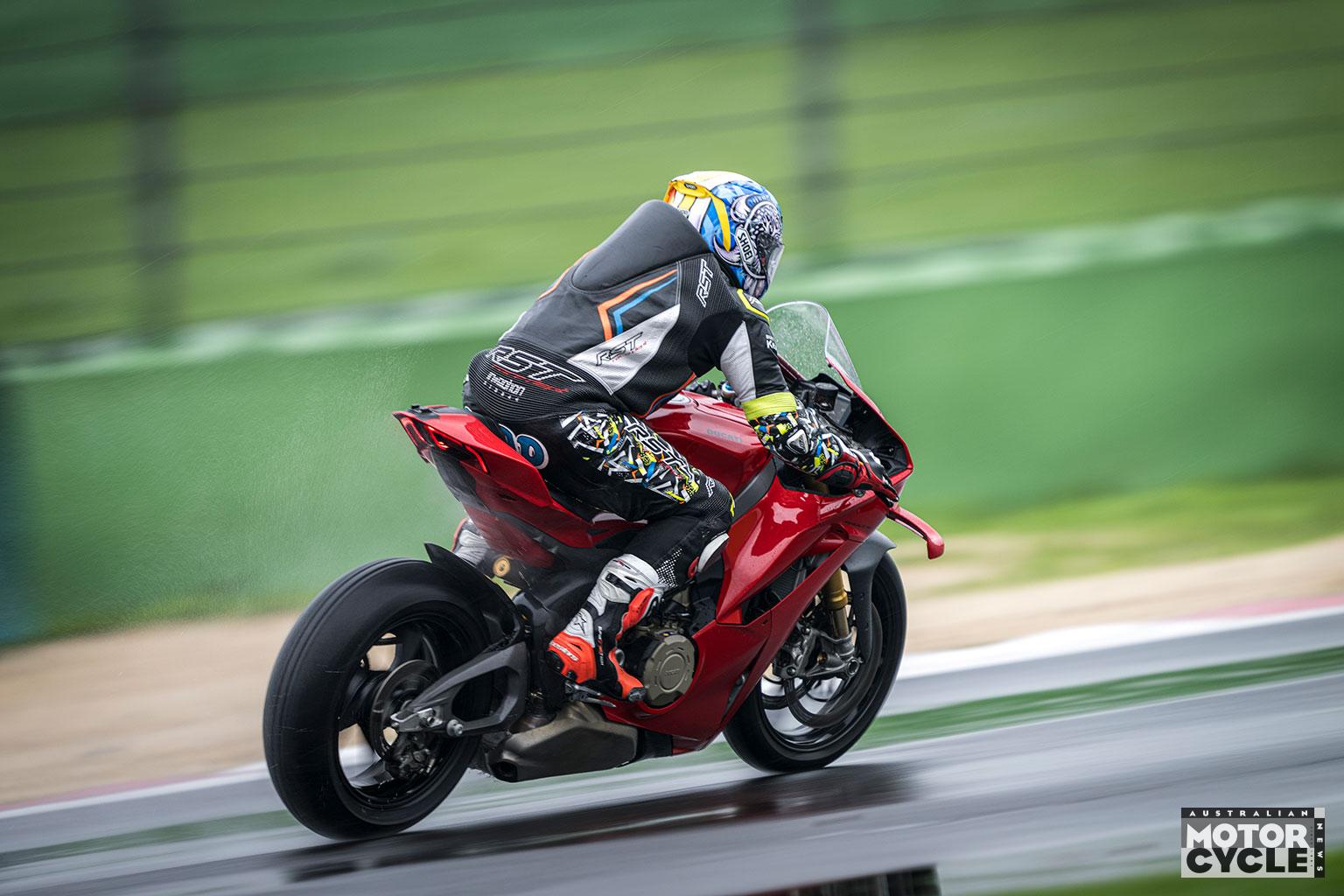 There will always be an argument for and against rider aids. The latest are designed to make riding on the road and track safer, easier and, should you wish, faster. My best lap time in the wet during this test was a 2.03 (my PB in the dry is 1.45), which shows how bad the conditions were. Typically, I’m around 10 to 12 seconds slower in the wet depending on the track. But without the Ducati rider aids working in the background, I’d estimate that my best time would have been 2.05 or 2.06, while achieving those times would have required draining amounts of 100 per cent concentration.
