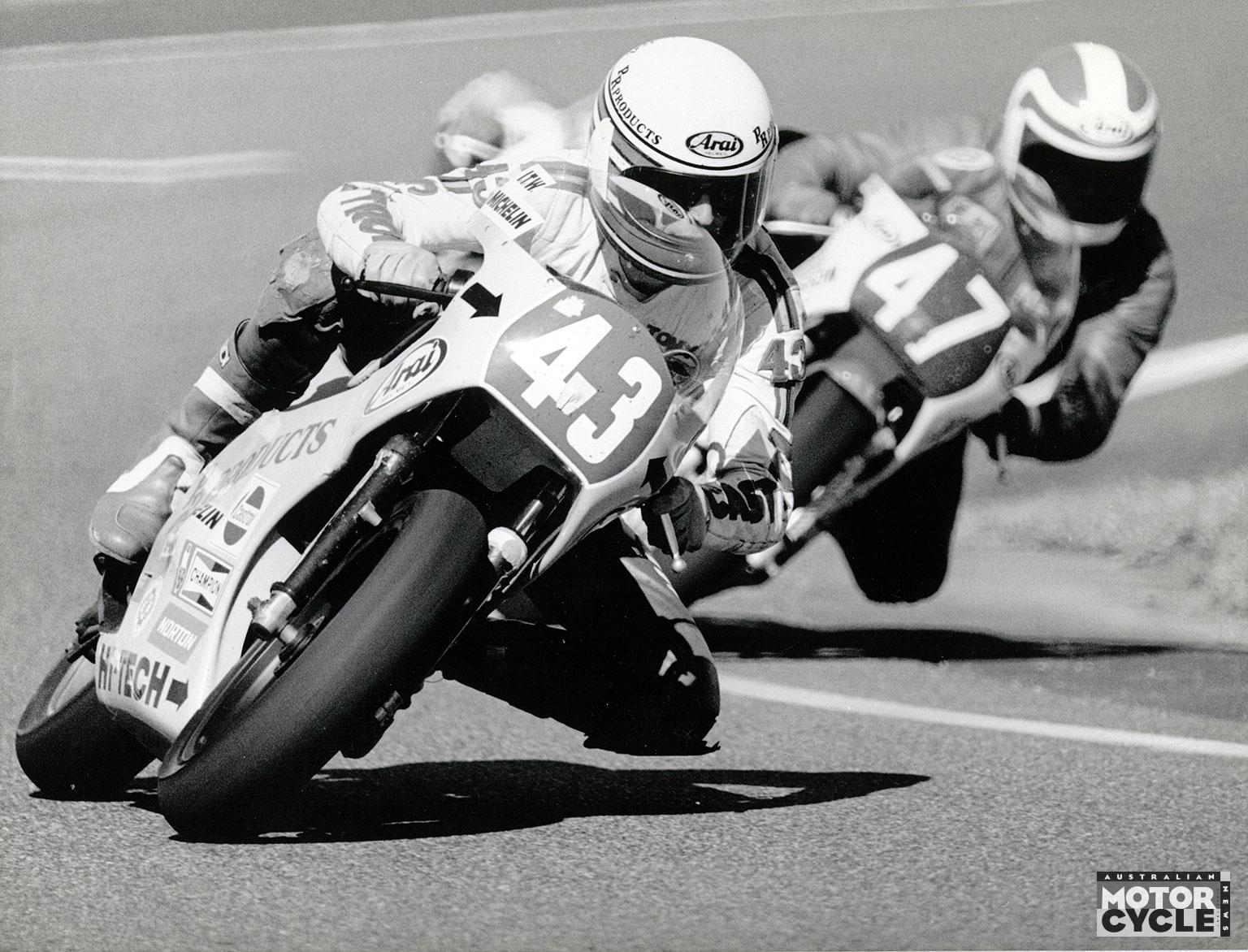 “I had a lucky break in 1983 when George Huse offered me an MBA 125 twin for Bathurst. I diced with Ian Saunders on another MBA until the last lap, when I missed a gear on Mountain Straight and had to settle for second,” he says.