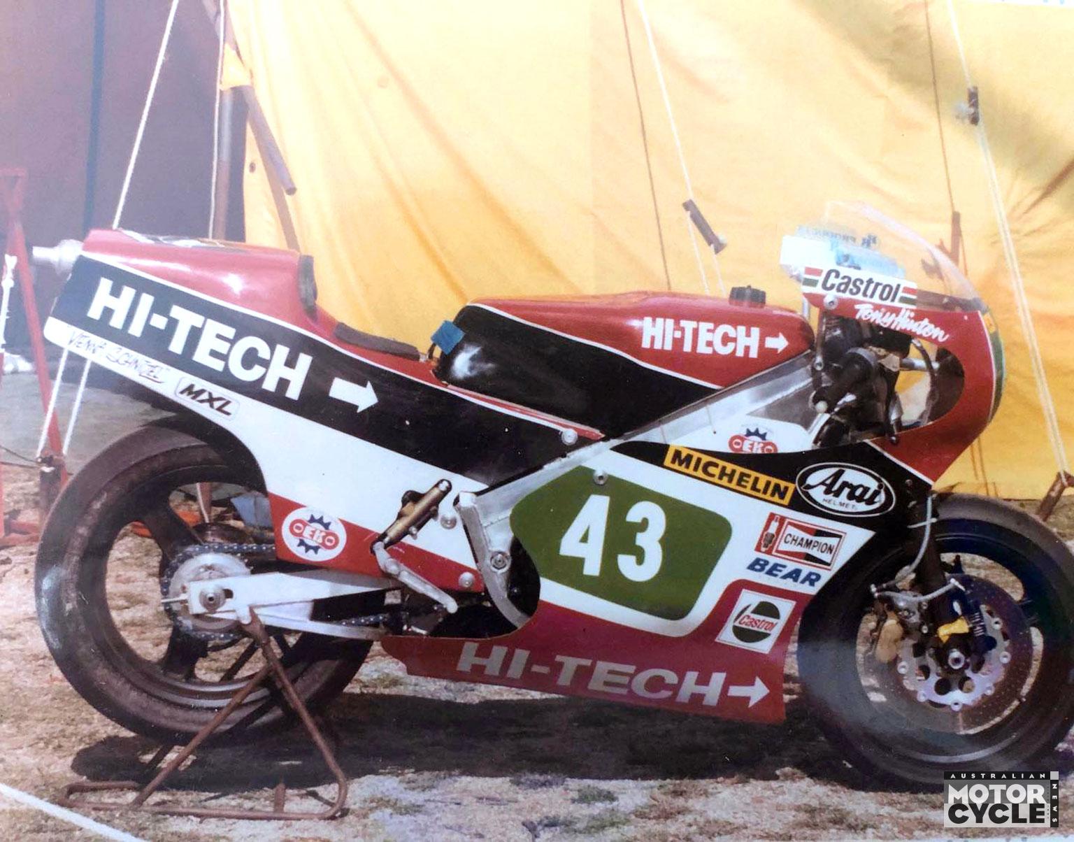 “I started motocrossing on a 125 and started being successful at schoolboy/club level,” Tony says. “Dad put the engine on methanol and modified the rear suspension for much longer travel. By 18-19 I wanted to road race, but Mum was against that because we’d lost Harry Jnr after a road-race crash in Italy. But I won out, bought the last new Yamaha TZ250F and started doing laps at Oran Park. The beauty of having a racer father is you’re around experienced people right from C-Grade.”