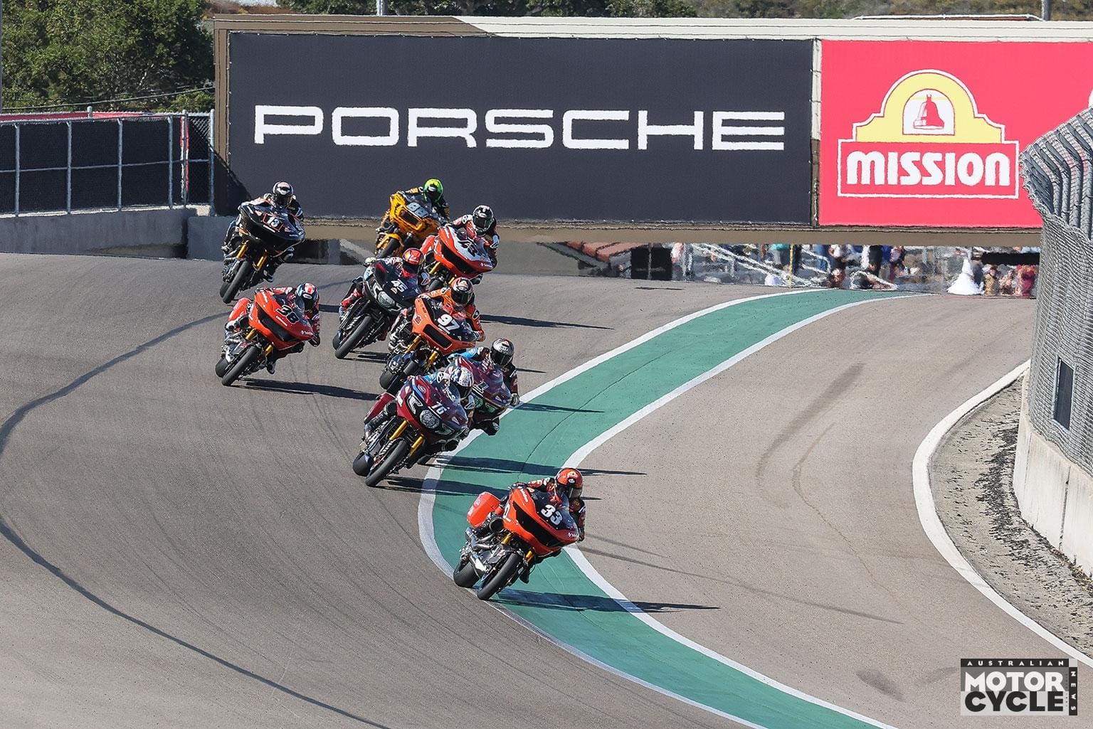 In Saturday’s opener, Wyman grabbed pole with a blistering new lap record of 1:27.524 around the famed 2.238-mile (3.6km) Laguna Seca circuit. He converted his pace into victory despite an early challenge from RevZilla/Motul/Vance & Hines Harley-Davidson’s Hayden Gillim, whose mechanical issues brought out a red flag.