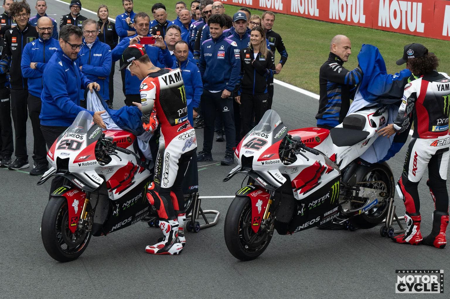 The Dutch GP is a fitting backdrop for the occasion, with Assen itself marking its 100th Grand Prix this year, reinforcing the nod to racing history as Yamaha’s factory and satellite teams come together under a single visual identity.