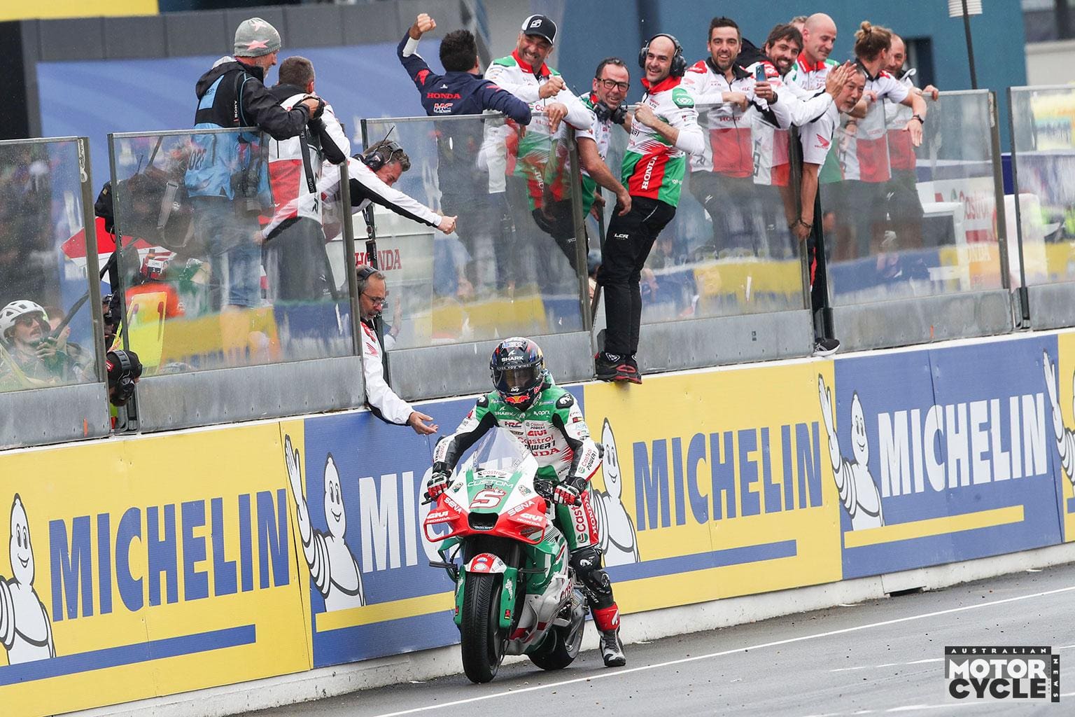 The sight of Johann Zarco performing his signature backflip in front of a euphoric French crowd will be etched into French motorsport folklore. It wasn’t the win anyone had predicted, but it was the win that France, Honda, and Zarco had desperately waited for.
