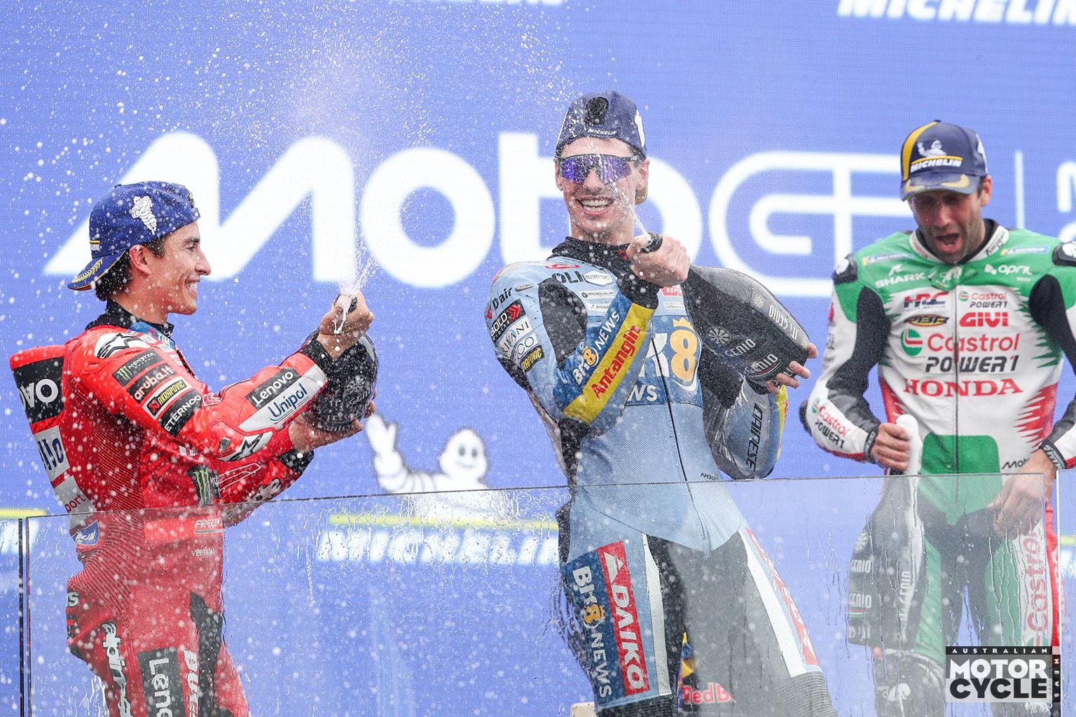 Johann Zarco’s second MotoGP win ended France’s 70-year wait for a premier class victory on home soil. Behind him, Marc Marquez took a level-headed second place to extend his championship lead. Aldeguer rounded out the podium with another sensational ride – his second of the round. Acosta and Vinales completed the top five, while wildcard Nakagami, who had played his tyre hand perfectly by never needing to change bikes or serve penalties, finished an impressive sixth.