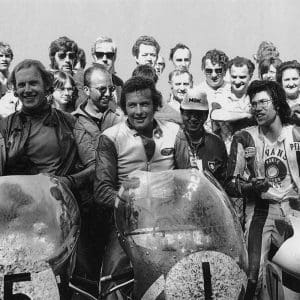 Jack Findlay Suzuki XR05 winner IoM Senior TT right 2nd Peter Williams Arter Matchless right 3rd place Charlie Sanby Suzuki 1973 ARCHIVE AHERL PHOTO
